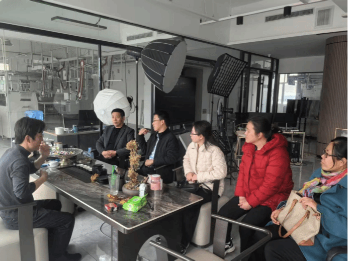 调研团队实地观摩了羊绒制品产销展一体化经营模式,清河电商协会会长李鹏举热情接待了教师团队,详细介绍了清河羊绒产业的整体运营情况、业务范围、市场定位以及未来发展规划。在交流过程中,李会长分享了在实践中的宝贵经验、成功案例以及当前面临的挑战和机遇。双方就企业人才需求、员工培训、校企合作模式等方面进行了深入探讨。