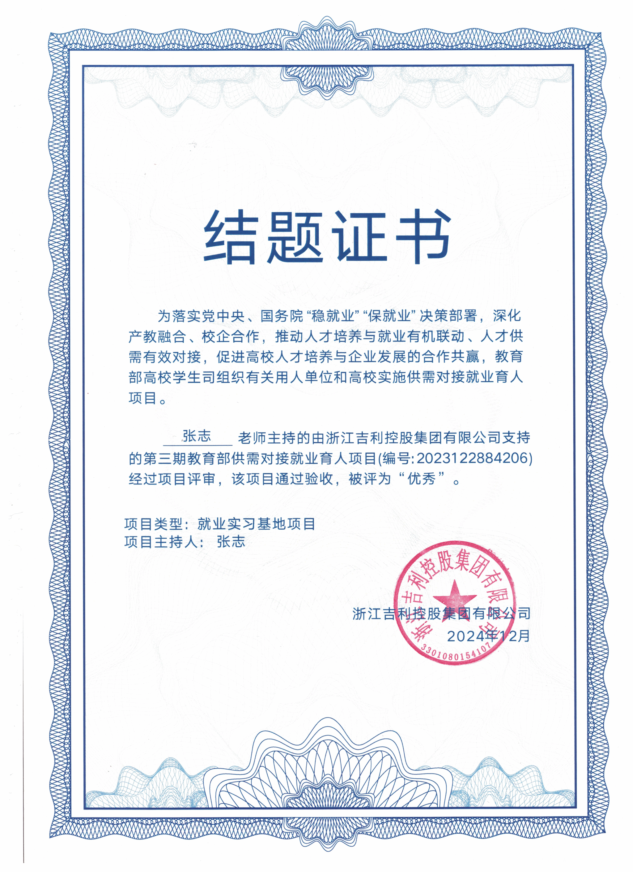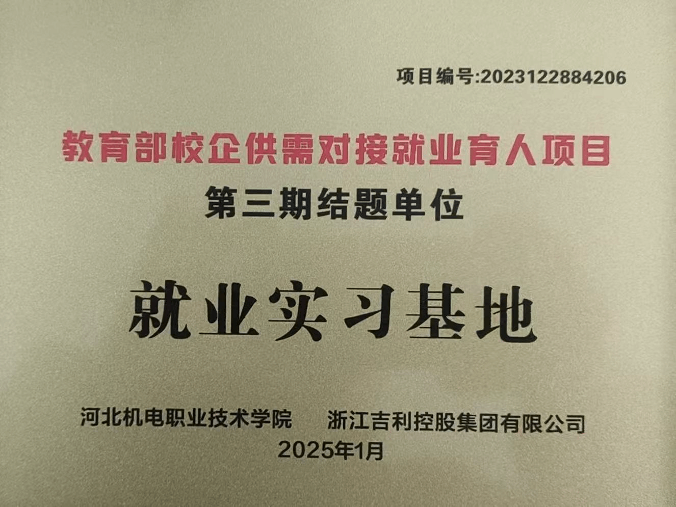 此次就业实习基地项目的成功结题,标志着汽车工程系与浙江吉利集团的合作进入提质升级新阶段。未来,双方将持续深化产教融合,为新时代职业教育改革和汽车产业转型升级提供创新样本。