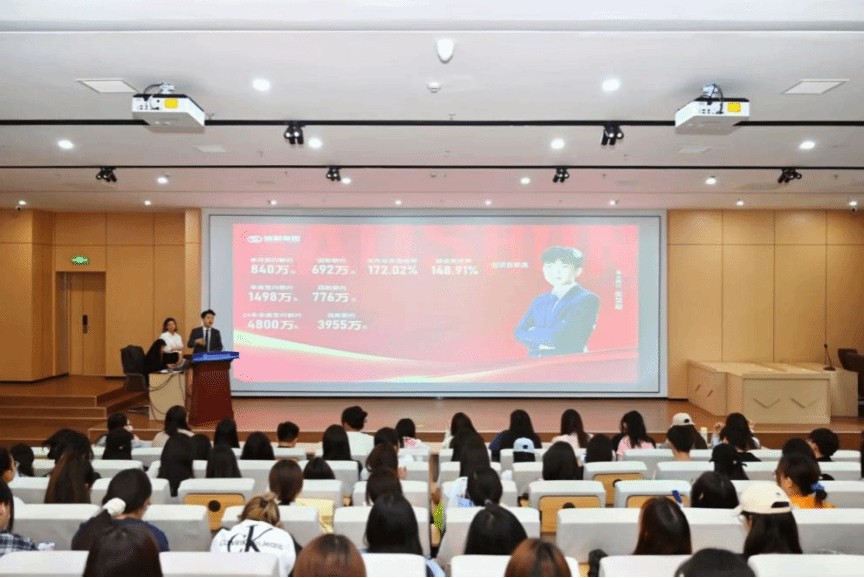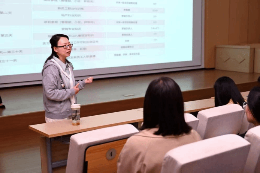 活动伊始,皓顺集团培训主管宋琳对集团及项目进行了全面介绍。从集团的发展历程、业务领域到核心竞争力,从特色项目的规划理念、建设成果到未来发展方向,每一个板块都展现出皓顺集团在行业中的卓越地位与创新精神。详实的数据、生动的案例,让同学们对房地产行业及皓顺集团有了更深入的认识。随后,皓顺集团的新晋销冠张慧超为同学们分享了,从一名大专毕业生成长为一名优秀的置业顾问的心路历程。来自一线的宝贵经验,让同学们深刻认识到营销工作不仅需要扎实的专业知识,更要具备敏锐的市场洞察力、良好的沟通能力和坚持不懈的精神。