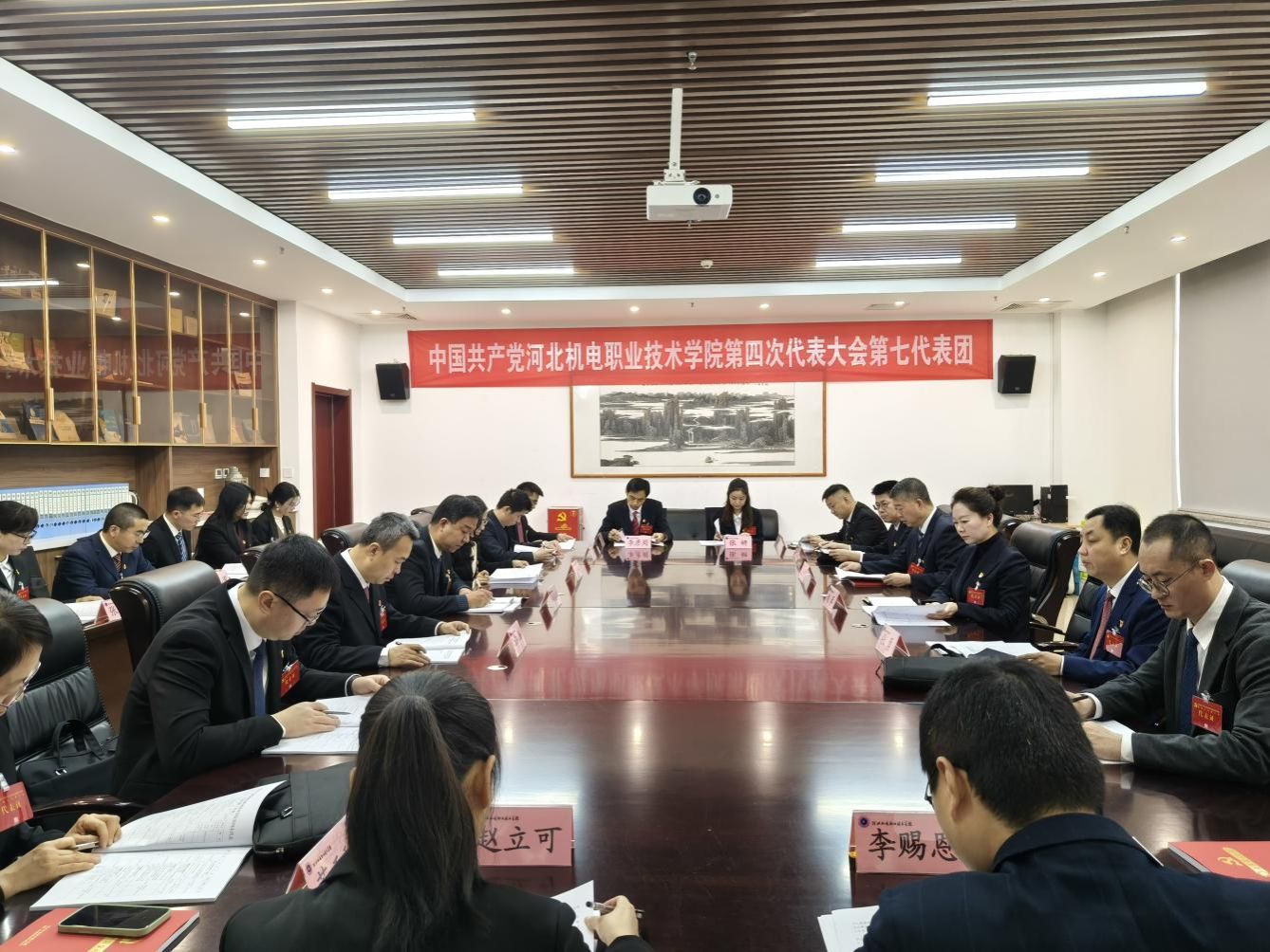 按照大会日程,中国共产党河北机电职业技术学院纪律检查委员会工作报告、党费收缴使用和管理情况报告采取书面形式提交大会审议。各代表团对党委工作报告、纪委工作报告、党费收缴使用和管理情况报告进行分组讨论,各代表团还讨论了大会选举办法(草案)和有关决议,酝酿党委、纪委委员候选人预备人选名单。大会主席团审议通过了大会选举办法(草案)和有关决议,确定了党委、纪委委员候选人预备人选名单,在听取了各代表团讨论情况后对第三届党委工作报告和纪委工作报告进行了充分讨论。