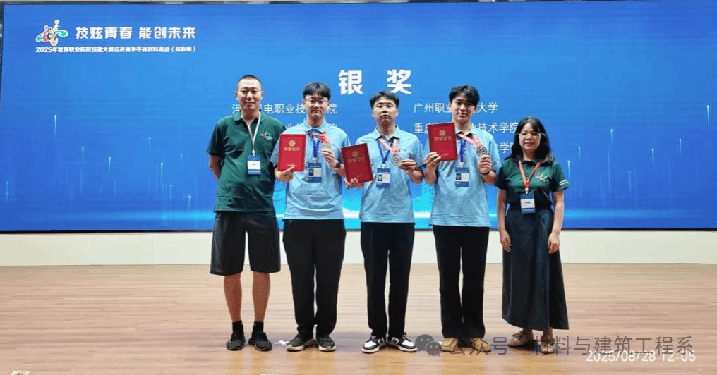 8月26-27日,2025年世界职业院校技能大赛“材料赛道(高职组)”在河北工业职业技术大学举行。由材料与建筑工程系学生任浩然、薛建恒、卢建伟组成的参赛队伍,在万敏、林鹏两位教师的指导下,代表河北省参加本届赛事。经过两天的激烈角逐,团队凭借出色表现斩获银奖。