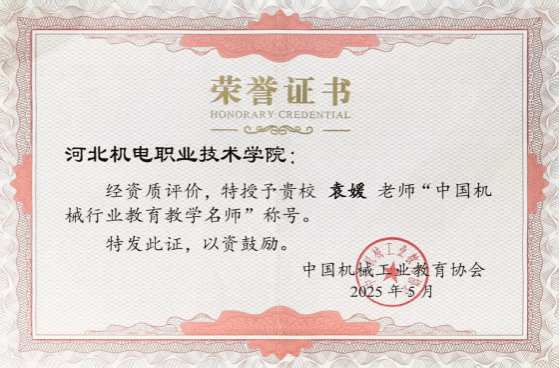 图4. 袁媛教师荣获“中国机械行业教育教学名师”称号