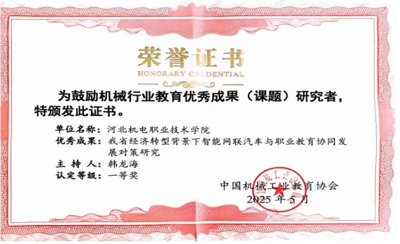 图5. 韩龙海教师荣获机械行业教育优秀成果研究者“一等奖”