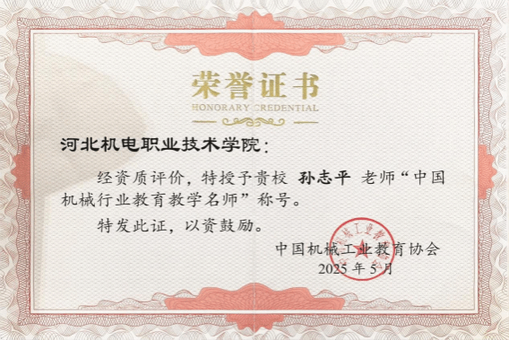图3. 孙志平教师荣获“中国机械行业教育教学名师”称号