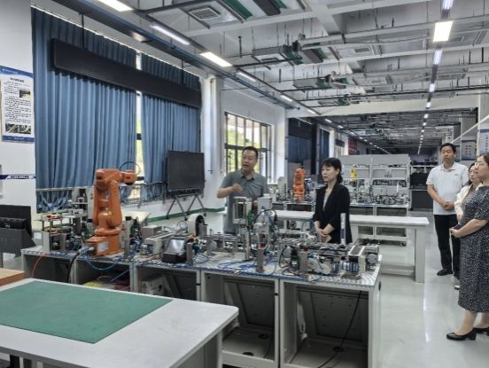 调研伊始,徐爱新一行在学院领导的陪同下参观了科创中心机械加工设备、自动化生产线、工业机器人等实践基地。徐爱新认真听取了机械工程系相关负责人关于校企合作、课程体系构建、实践教学体系运行等方面的详细汇报,并就如何进一步优化课程设置、提升学生实践创新能力等问题与在场教师进行了深入交流。